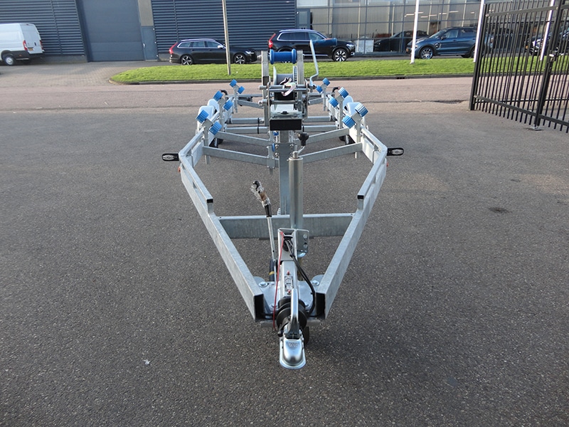 • Acht kielrollen verdeeld over drie maal een rollenwip met daarin twee zware kielrollen gemonteerd aan de achterzijde en het midden van de iTrailers boottrailer en twee enkele zware kielrollen gemonteerd aan de voorzijde van de trailer voor een optimale verdeling.